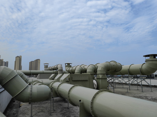研究室尾氣 → 化學活化炭過濾系統器 → 引軸流風機 → 尾氣排放標準